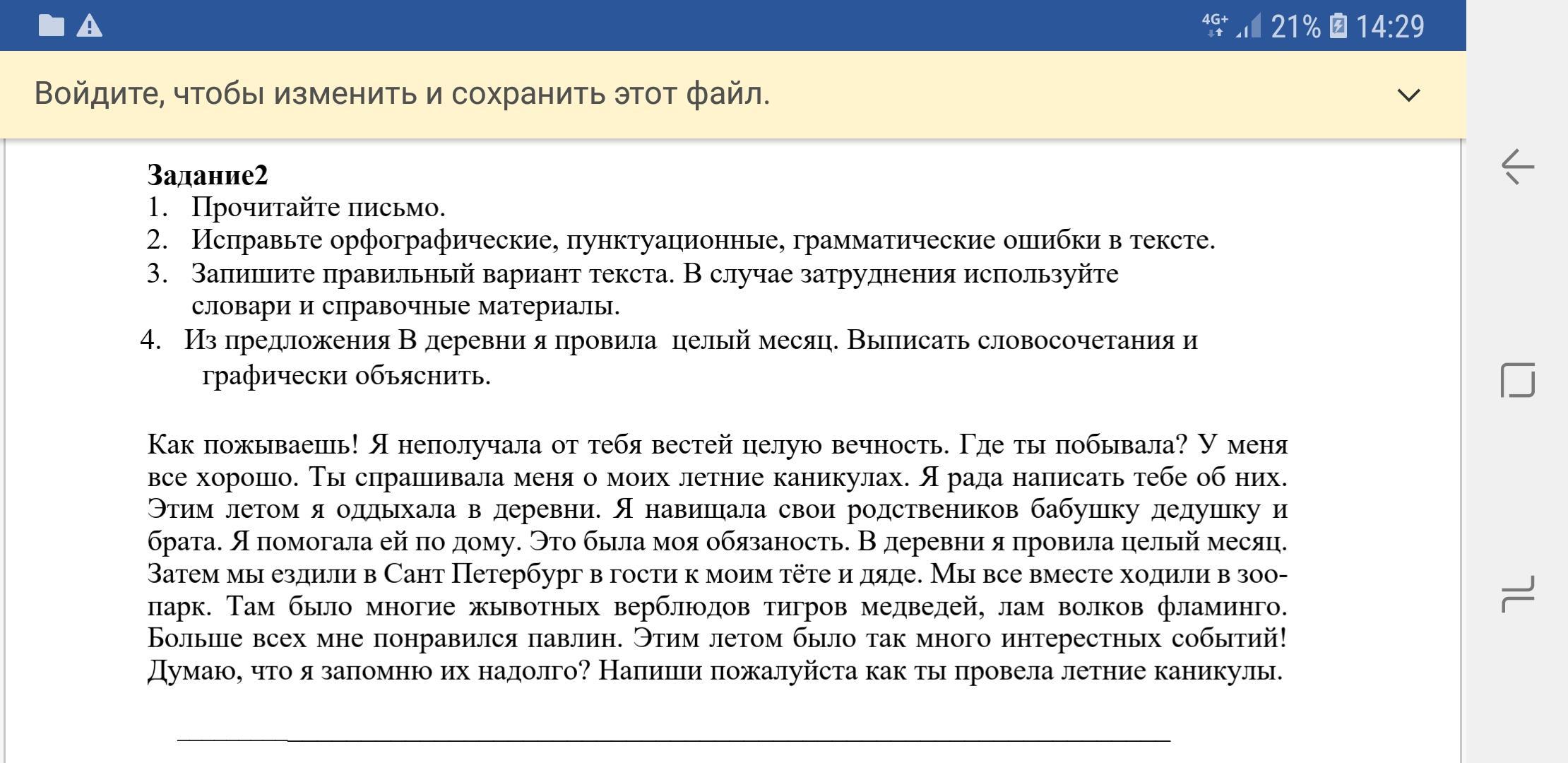 Ка поживаешь? Я не получала от тебя вестей целую вечность! Где ты побывала? У меня всё хорошо. Ты спрашивала меня о моих летних каникулах. Я рада написать тебе о них. Этим летом я отдыхала в деревне. Я навещала своих родственников - бабушку, дедушку и брата. Я помогала им по дому. Это была моя обязанность. В деревне я провела целый месяц. Затем мы ездили в Санкт-Петербург в гости к моим тёте и дяди. Мы все вместе ходили в зоопарк. Там было много животных: верблюдов, тигров, медведей, лам, волков, фламинго. Больше всех мне понравился фламинго. Этим летом было так много интересных событий! Думаю, что я запомню их на долго. Напиши, пожалуйста, как ты провела летние каникулы?