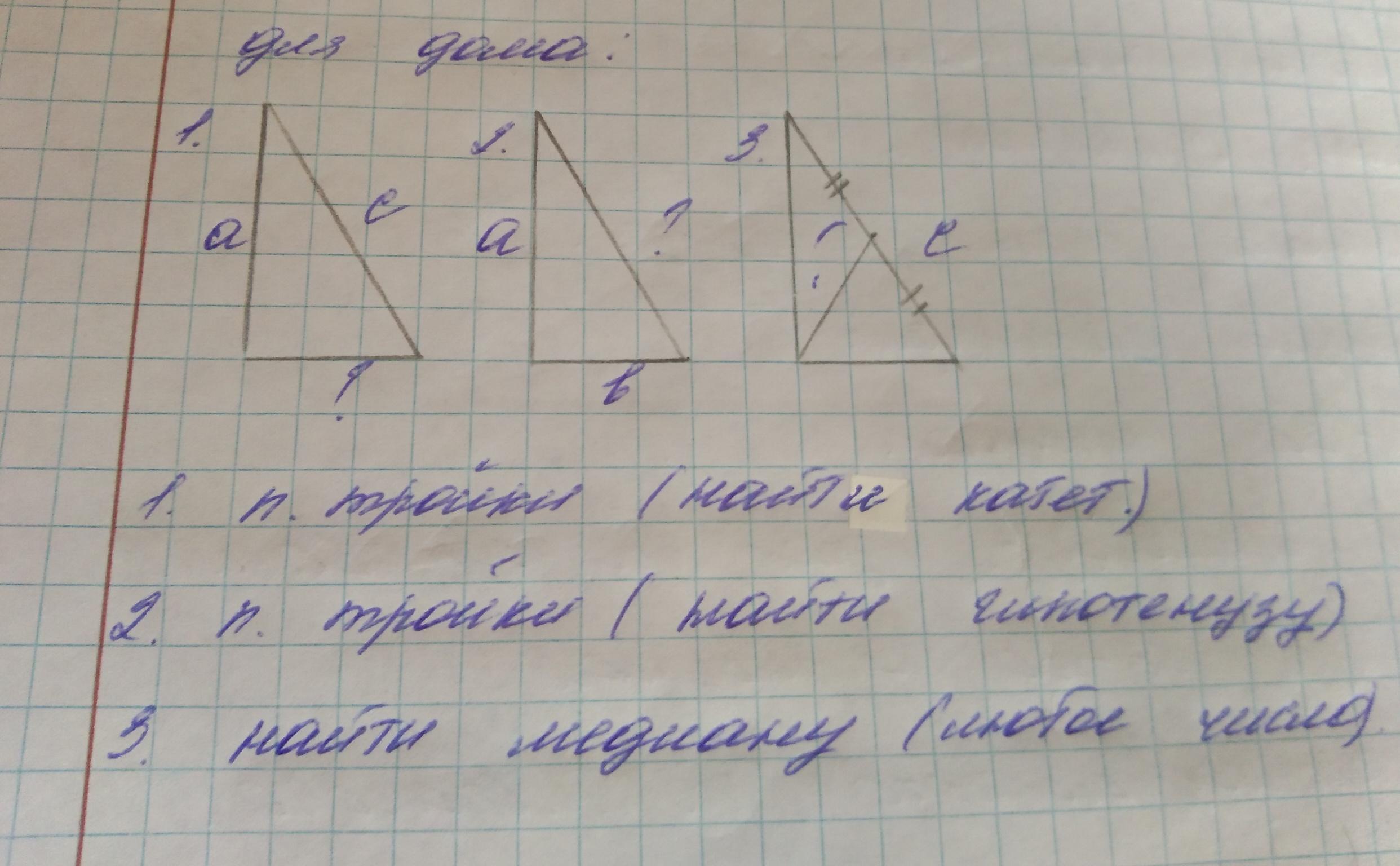 Пожалуйста составьте три задачи по условию (пифагоровы тройки)