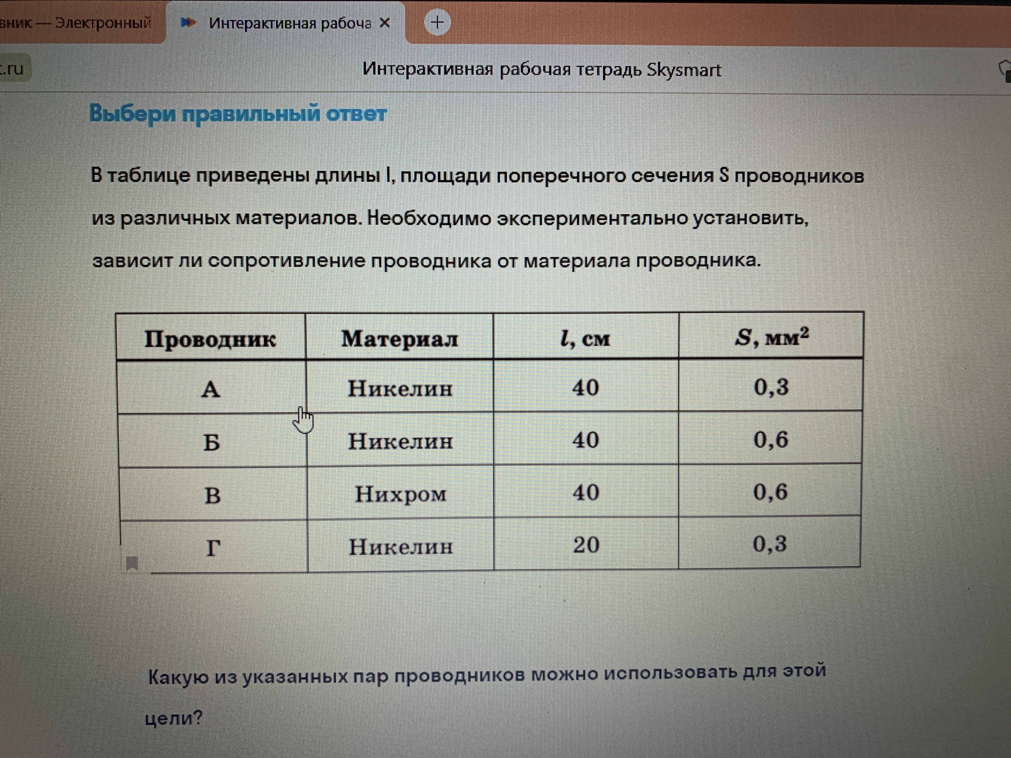 В таблице приведены длины I, площади поперечного сечения S проводников из различных материалов. Необходимо экспериментально установить,зависит ли сопротивление проводника от материала проводника? Помогите пожалуйста срочно!