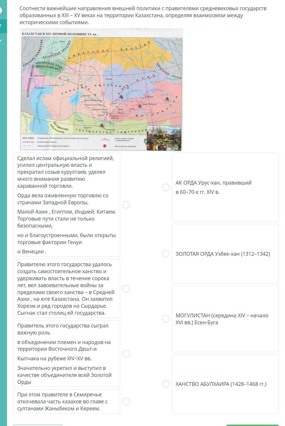 то что внизу, неправильный ответ. 1-2 Золотая Орда, 2-1 Ак Орда, 3-3 Могулистан, 4-4 Ханство Абулхаира