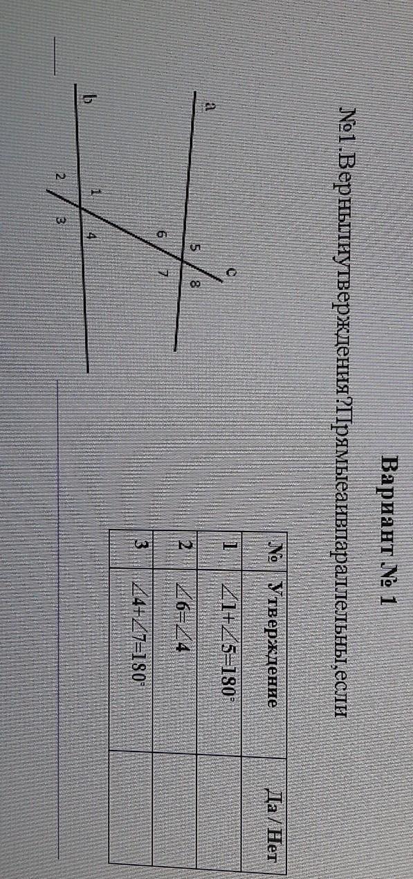 3 утверждение верно, т.к.<4 и <7 односторонние и для параллельности прямых они должны давать в сумме 180°.