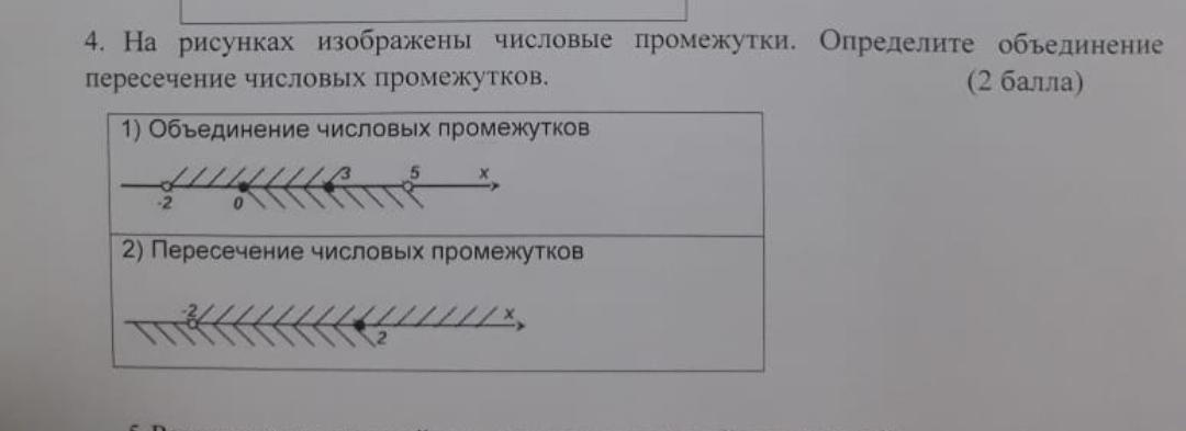 4. На рисунках изображены числовые промежутки. Определите объединение и пересечение числовых промежутков. (2 балла)