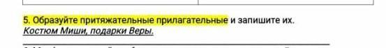 образуйте притяжательные прилагательные и запишите их. Костюм Миши,Подарки Веры