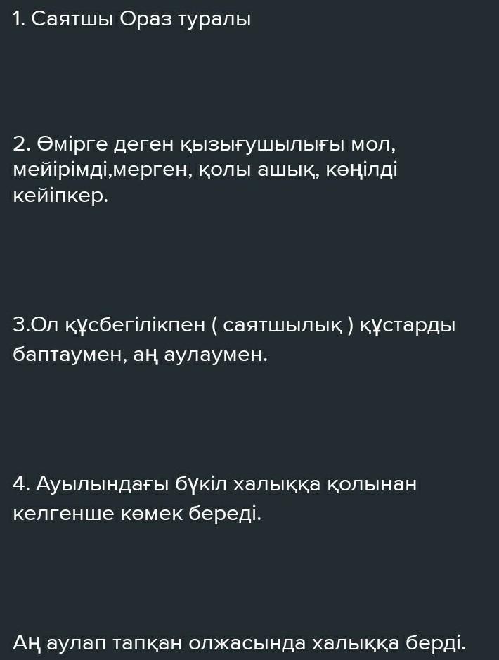 69 бет 8 - тапсырма. Мәтіндегі басты кейіпкерге мінездеме бер.
