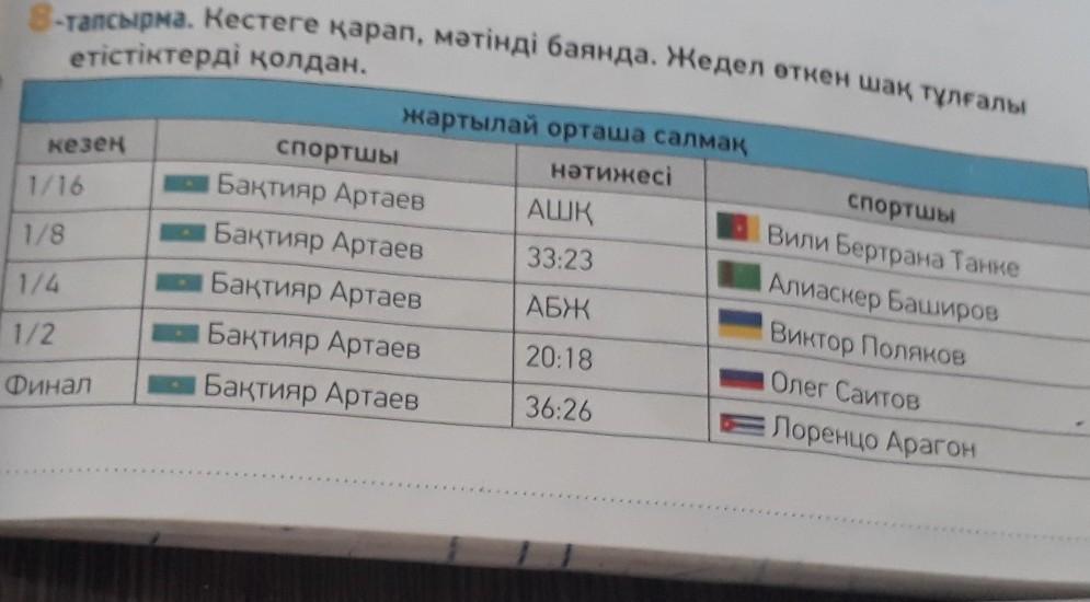 8-тапсырма. Кестеге арап, мәтінді баянда. Жедел ткен ша тлалы