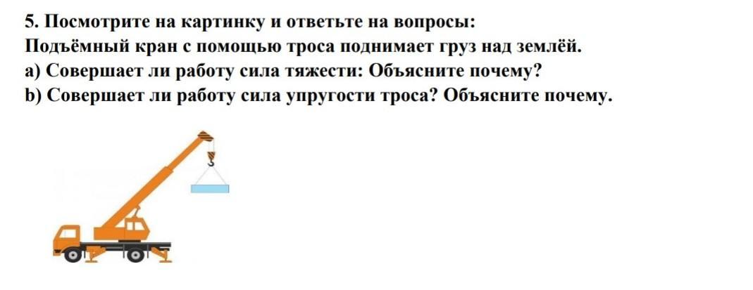 А)нет сила тяжести не совершает никакой работы,она даже мешает Б)Да трос растягивается в противодействие силы тяжести,что помогает работе крана
