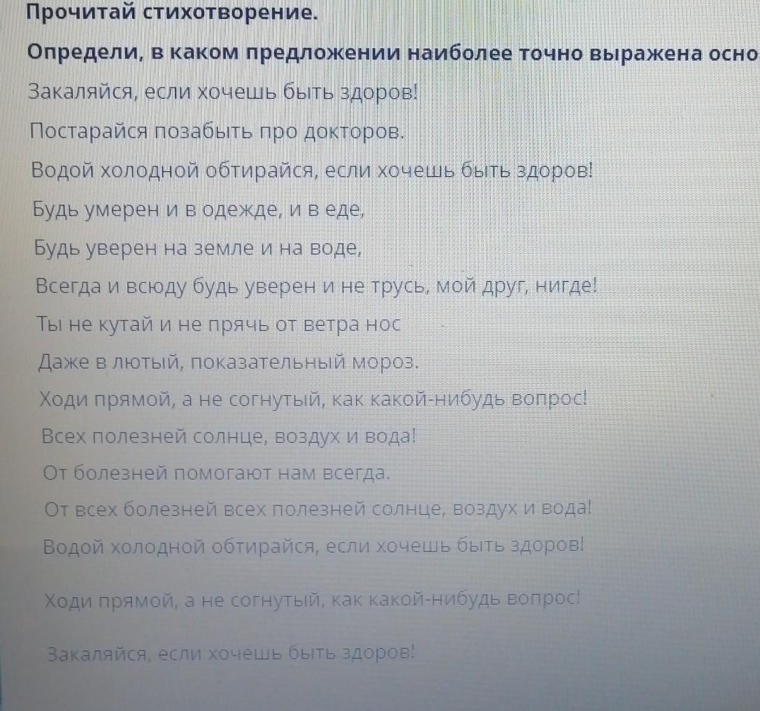 Определи, в каком предложении наиболее точно выражена основная мысль текста.