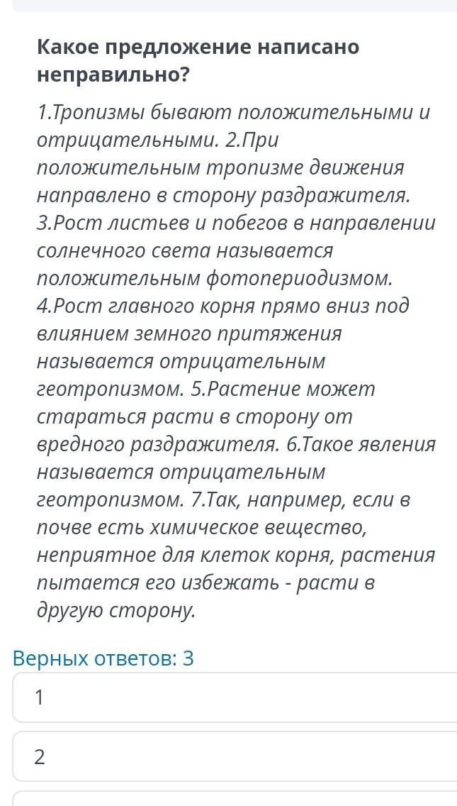 Пятое. Так как оно не может расти в сторону от вредного раздражителя, а БУДЕТ это делать