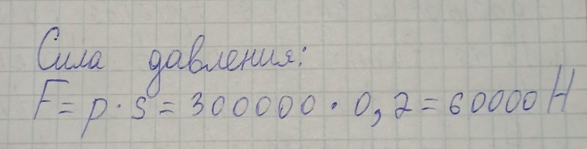 Трактор. работающий на поле, оказывает на почву давление 300000 Па. Площадьсоприкосновения трактора с почвой равна 0.2 м.