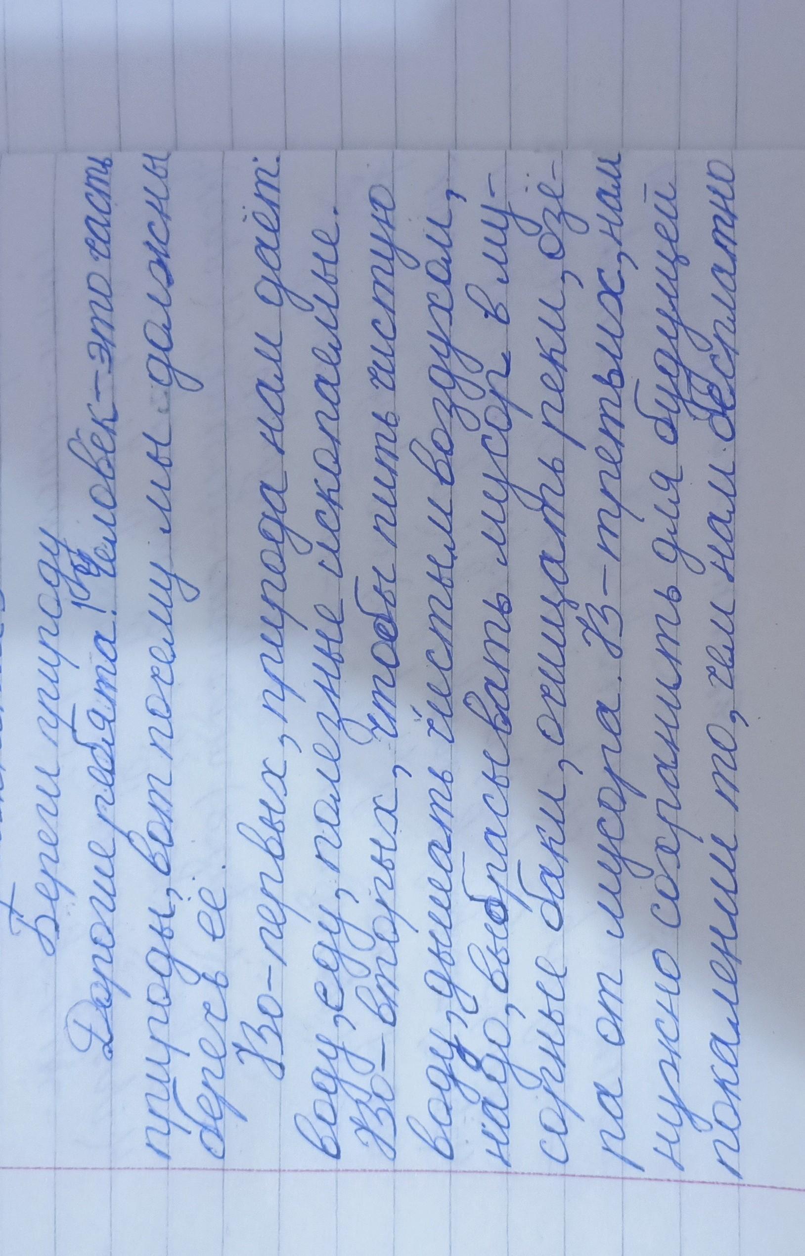 5. Han Иши сочинение рассуждение на тему «Береги природу используя схему 1 Вступление Тезис Необходимо беречь и охранять родную природу Основная часть Доказательства 1. Что мы получаем от природы? 2. Почему так важно пить чи стую воду дышать чистым воз духом? 3. Зачем будущих поколений то, чем нам нужно сохранить для бесплатно дано пользоваться сейчас? 3 Заключение. Вывод Что должны для природы? сделать люди Текст-рассуждение состоит из Используемые слова: Дорогие ребята! Человек - это 1 / (40 cm) * b природы, вот почему .. Используемые слова: Во-первых, Во-вторых, В-третьих, 2 Используемые слова: Поэтому я считаю, что... стать друзьями и 30щитниками... Береги и охраняй природу!
