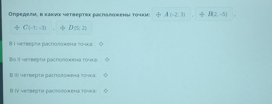 Определи, в каких четвертях расположены точки: TA (-2; 3)