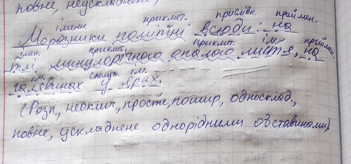 Допоможіть будь ласка даю 20 балів !!! "Зробіть синтаксичний розбір речення ": Морозники помітні всюди: на тлі минулорічного опалого листя , на галявинах у ярах.