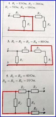 Rэ=R3+R(2,4)+R5=10+20+10=40 Ом.