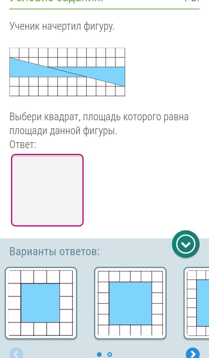 Выбери квадрат, площадь которого равна площади данной фигуры.