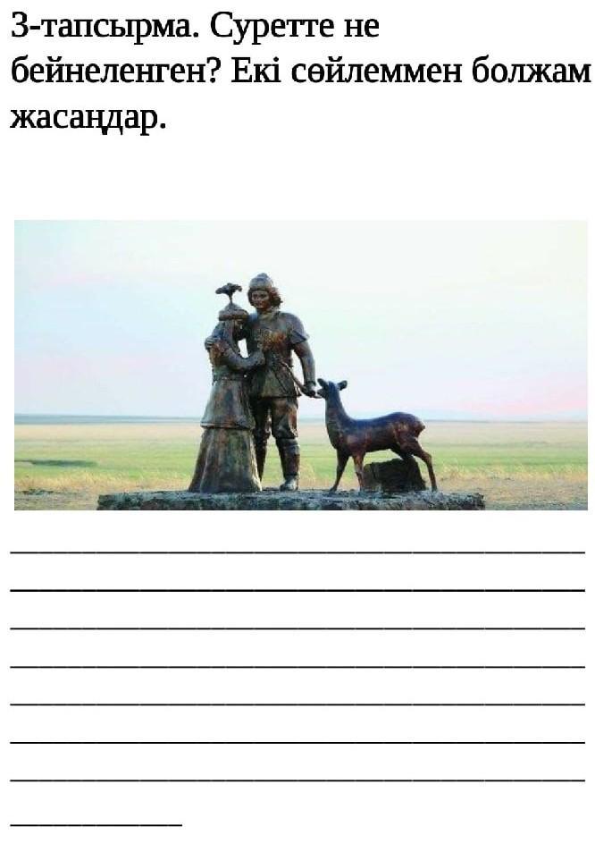Суретте Қозы Көрпеш пен Баян сұлудың ескерткіші. Олардың махаббаттары қазіргі жастарға үлгі болсын деп орнатты.