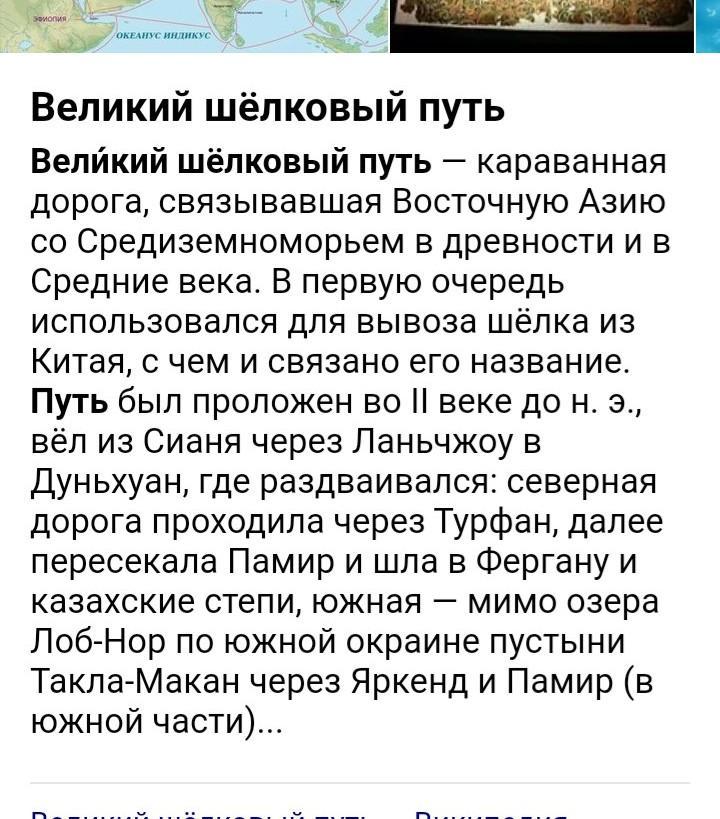 Великий шёлковый путь — караванная дорога, связывавшая Восточную Азию со Средиземноморьем в древности и в Средние века. В первую очередь использовался для вывоза шёлка из Китая, с чем и связано его название. Путь был проложен во II веке до н.э