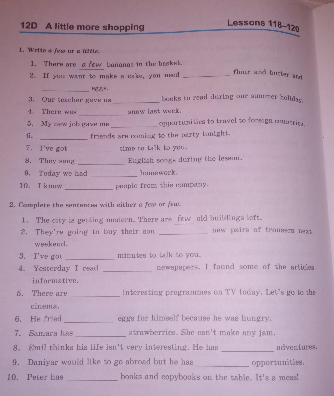 a few - используется для исчисляемых существительных