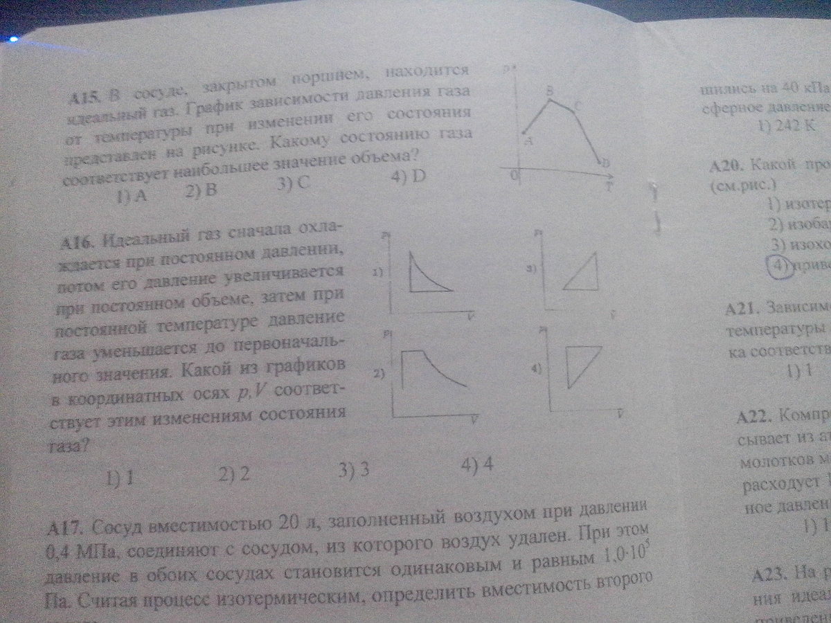 Наибольшему объёму соответствует максимальная температура и минимальное давление - это 4)Д.