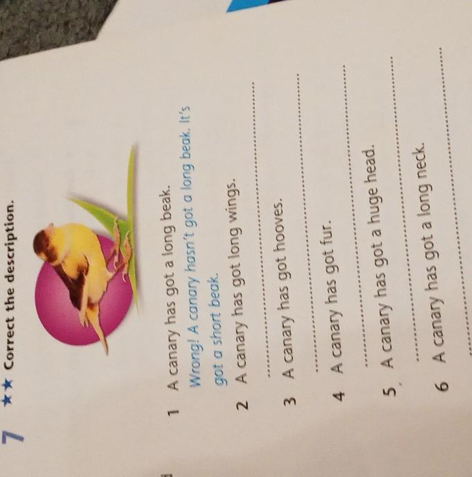 6 Wrong!A canary hasn't got a long neck. It's has got a short neck.