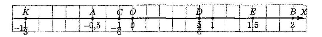 накресліть кординатну пряму. За одиничний відрізок прийміть відрізок завдовжки 5см.Позначте точки А(-0,5), В(2), С(-1/6), D(5,6), К(-1 1/3), Е(1.5)
