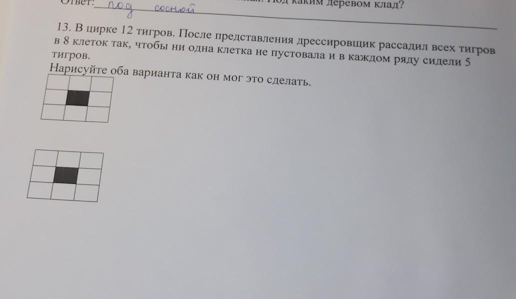 В цирке 12 тигров. После представления дрессировщик рассадил всех тигров в 8 клеток так, чтобы ни одна клетка не пустовала и в каждом ряду сидели 5 тигров. рисунок плиз 3 КЛАСС