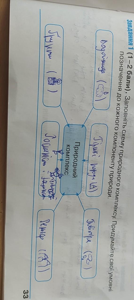 . Заповніть схему природного комплексу. Придумайте свої умовні