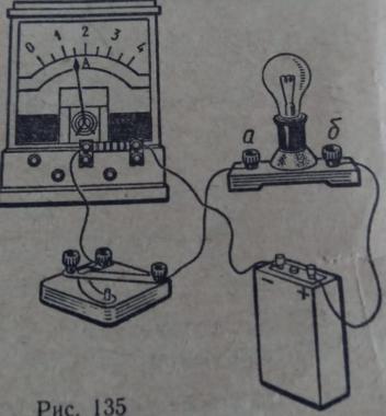 Какое направление имеет ток на лампе? А) от а к б. В) от б к а