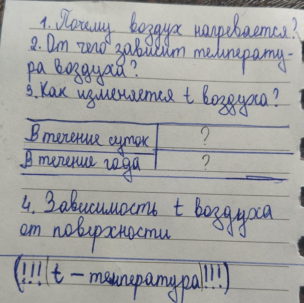 3)(сутки) Температура воздуха всегда меняется на протяжении суток. Она зависит от количества солнечного тепла, которое поступает на Землю.
