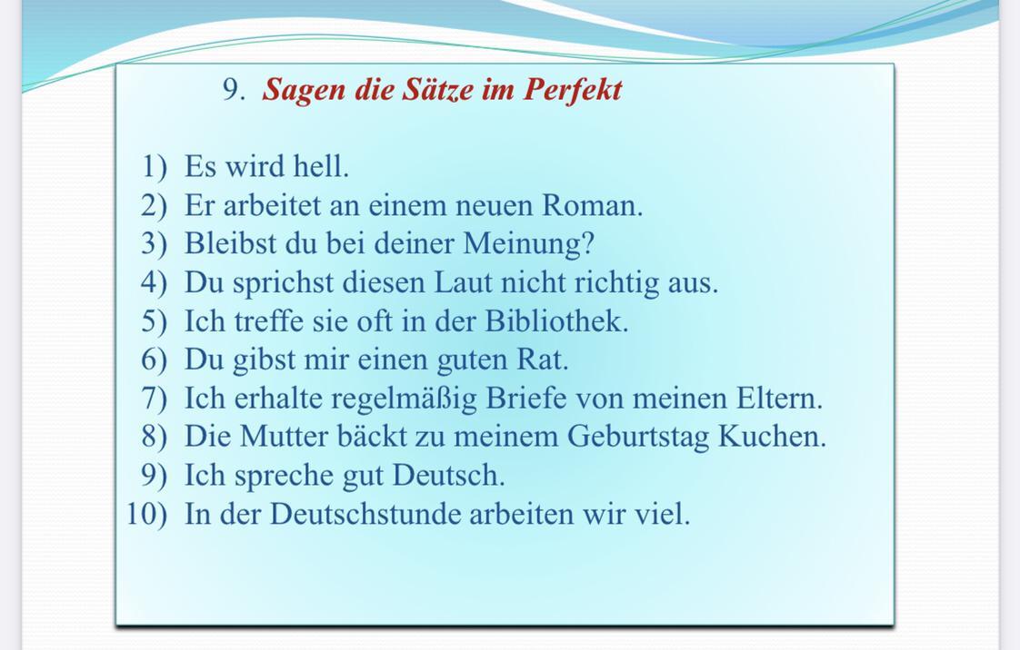 10) In der Deutschstunde haben wir viel gearbeitet.