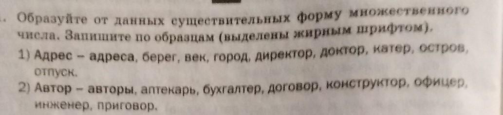 1. Берег - берега, век - века, город - города, директор - директора, доктор - доктора, катер - катеры, остров - острова, отпуск - отпуски