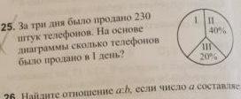 Итак, во второй день продано 40%, что составляет 2/5 от всего количества проданных телефонов ( 40% = 2/5 ), а в третий день была продана 1/5 от всего количества проданных телефонов ( 20% = 1/5 ), то есть в первый день было продано 5/5 - 2/5 - 1/5, что равно 2/5, а 1/5 от 230 составляет 230/5 = 46, а всего мы вычитаем 3/5, что равняется 138, 230 - 138 = 92.