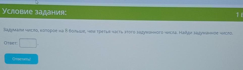 Пусть х -задуманное число, тогда (х-8) - третья часть задуманного числа,