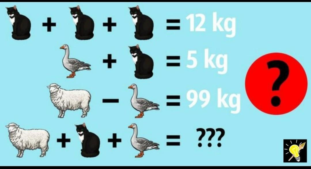 1 кошка 4 кг. 1 гусь 1 кг баран 100 кг. 4+1+100=105