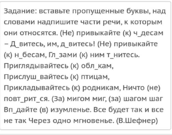 Не привыкайте к чУдесам, дАвитесь, дАвитесь, не привыкайте к нЕбесам, глАзами к ним тЯнитесь, к облАкам, к птицам, к родникам, не повтОрится, за мигом, за шагом, впАдайте в.