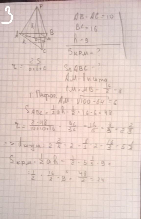 Основанием пирамиды является равнобедренный треугольник, основание которого равно 16 см, а боковая сторона – 10 см. В пирамиду вписан конус. Найдите площадь осевого сечения конуса, если его высота равна 9 см.