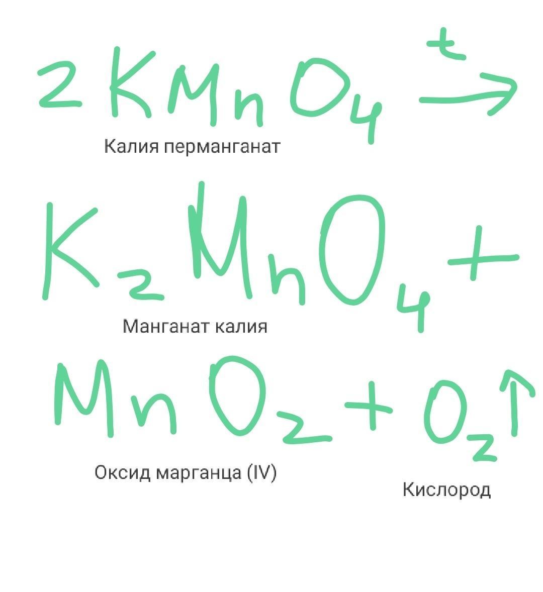 Запишите уравнение реакции (расписание при нагревании калий перманганата) и расставьте