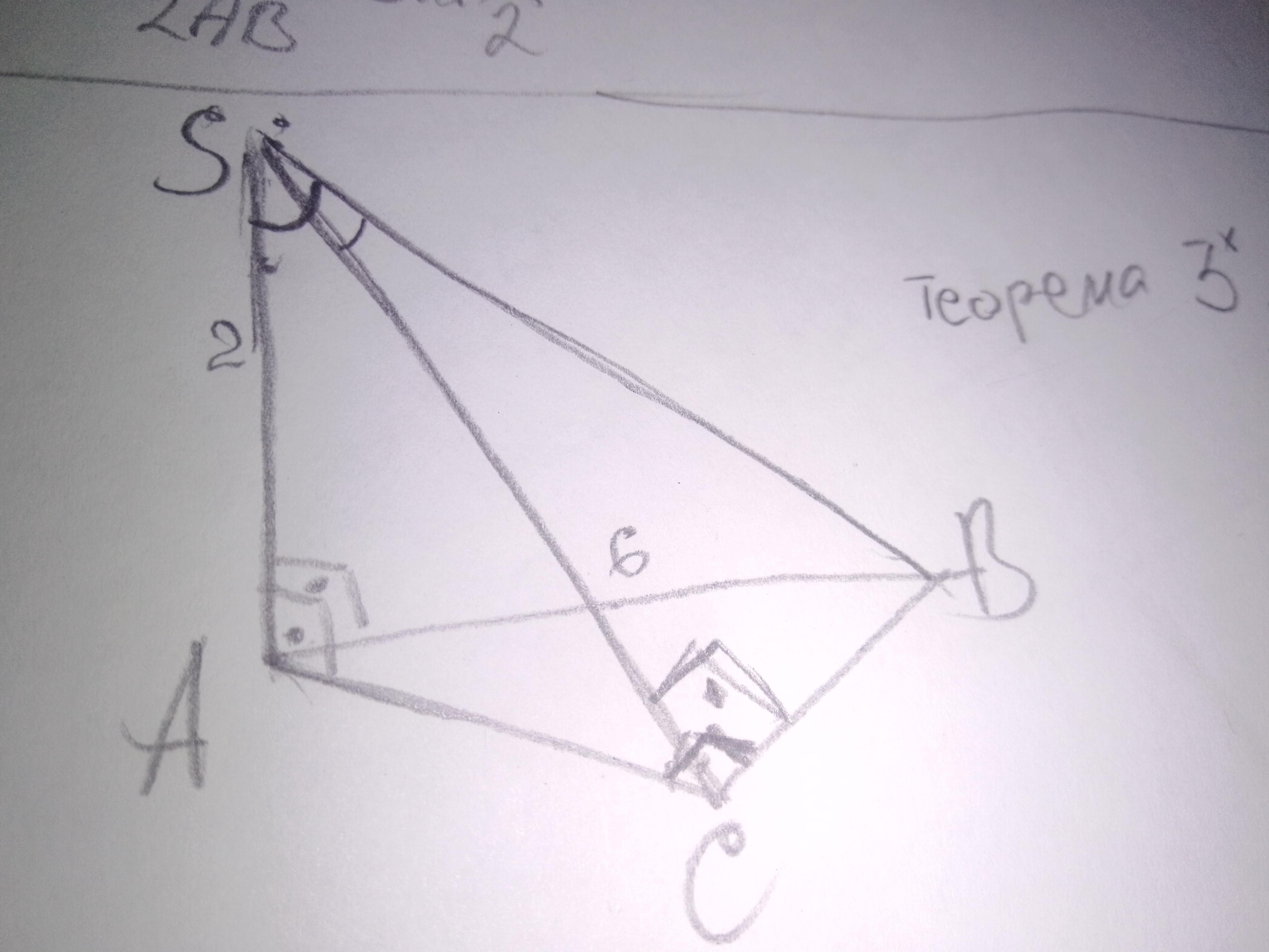 2.Дана правильная треугольная пирамида SABC с вершиной S. Найдите угол между высотой пирамиды и ребром SB, если высота пирамиды равна 2, а сторона основания пирамиды равна 6. Ответ дайте в градусах.