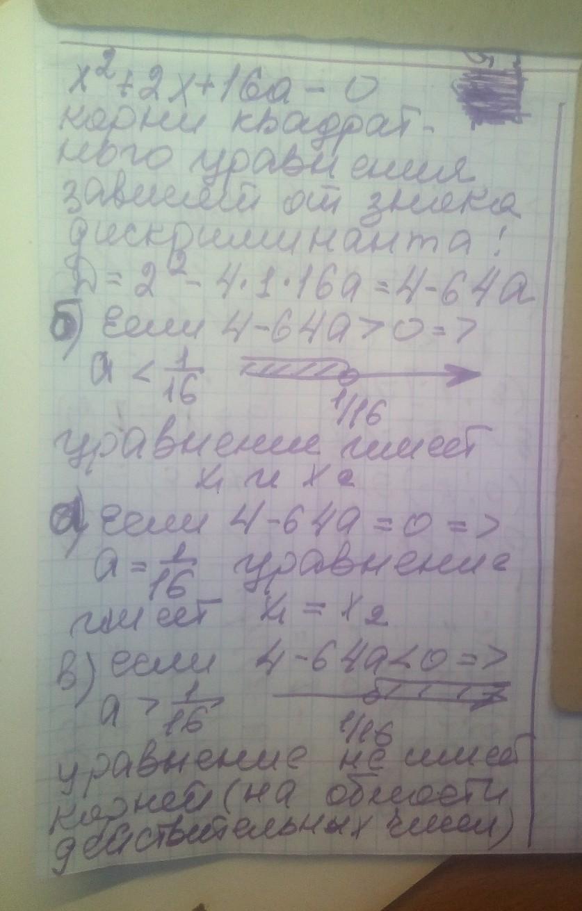 Визначте, при яких значеннях а рівняння x²+2×x+16×a=0