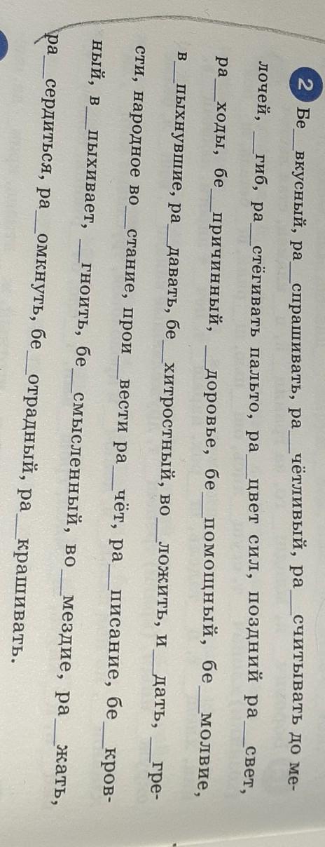 безвкусный, расспрашивать, расчетливый, расчитывал, сгиб, расцвет, растегивать,рассвет, расходы, беспричинный, здоровье, беспомощный, безмолвие, вспыхнувшие, раздавать, бесхитростный, возложить, издать, сгрести, народное восстание, произвести расчёт, расписание, бескровный, вспыхивает, сгноить, бессмысленный , возмездие , разжать, рассердиться, разомкнуть, безотрадный, раскрашивать