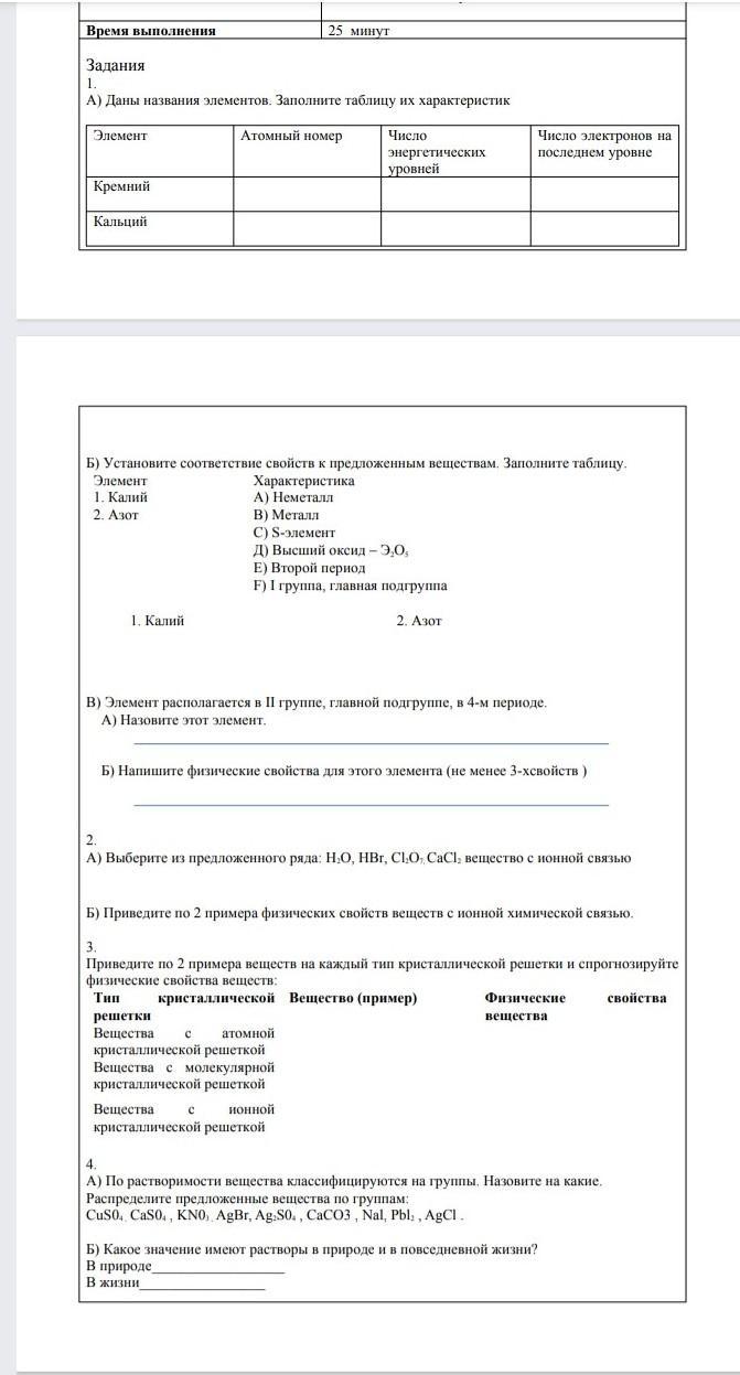 А) Даны названия элементов. Заполните таблицу их характеристик