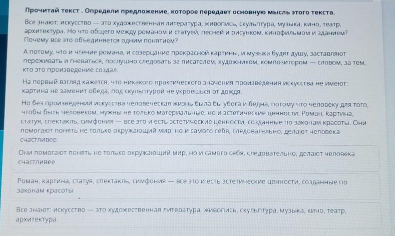 Прочитай текст. Определи предложение, которое передает основную мысль этого текста.
