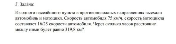 V мотоцикла - ? км/ч, 16/25 автомобиля