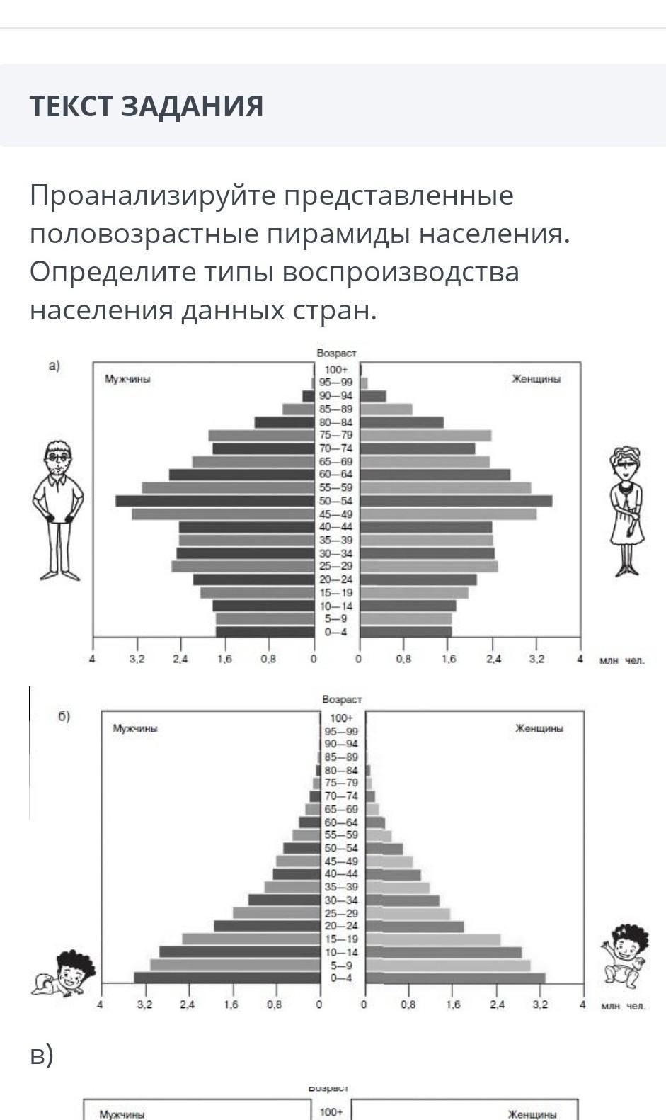 Проанализируйте представленные половозрастные пирамиды населения определите типы воспроизводства населения данных стран. это соо география