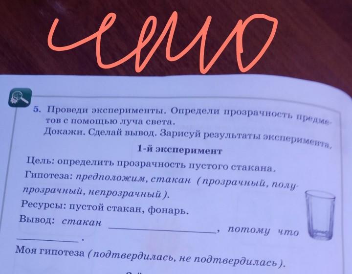 Вывод: стакан прозрачный, потому что свет фонарика прошел через стакан .