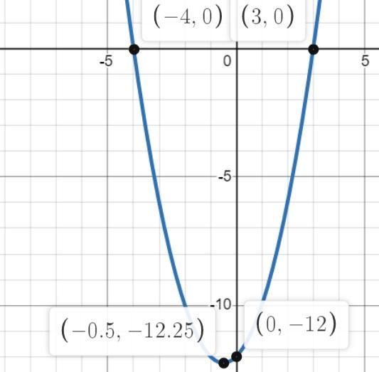 построить график функции y=x^2+x-12.По графику определите точки,которые лежат на оси Oy