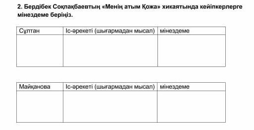 Мінездеме:бұзық,қояншық,ұрлықшы (бір атайдың үйінен балық аулайтың құралдарын ұрлайды).