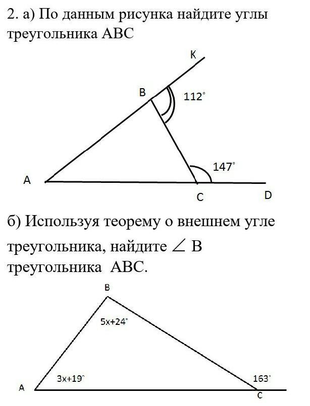 б) Внешний угол тр-ка равен сумме двух внутренних углов, не смежных с ним