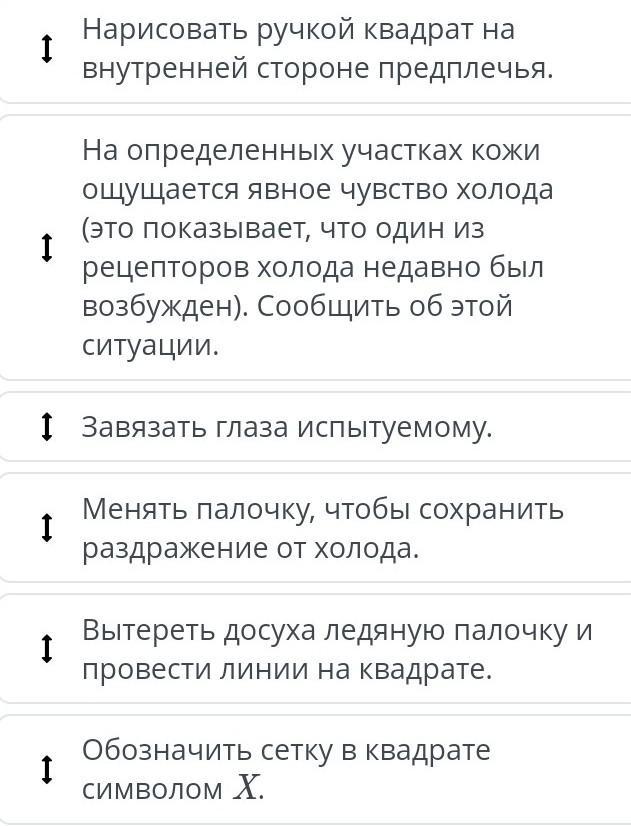 расположи по порядку этапы хода работы проведенного эксперимента по определению рецепторов холода