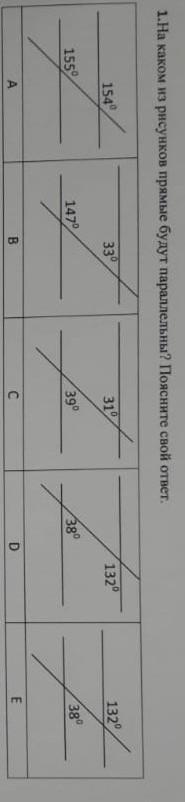 На каком рисунков прямые будут параллельны? Поясните свой ответ