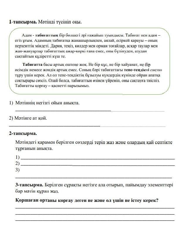 1) табиғат - адамның ажырамас бөлігі. Оны сақтау біздің міндетіміз.